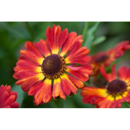 Helenium Autumnale Salsa Mariachi form big beautiful long lasting orange, red and yellow daisy-like flowers in late summer and autumn.